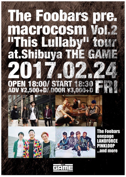 - 2017/02/24 渋谷 the GAME にてThe Foobars企画 macrocosm vol.2 "This Lullaby"tourに出演致します。チケット絶賛発売中!
