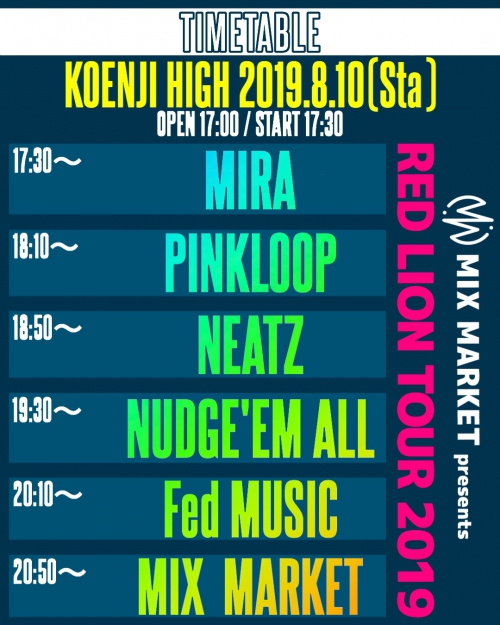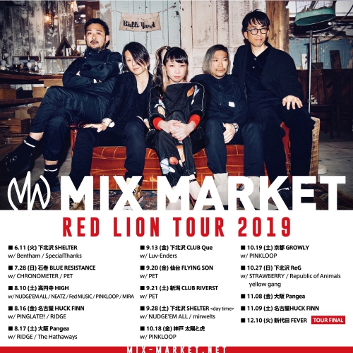 - MIX MARKETのレコ初ツアー、”RED LION TOUR 2019” に出演が決定しました!東京、関西方面を含む全三カ所です。関西方面の詳細は、追って更新いたします。ご予約はお早めに!